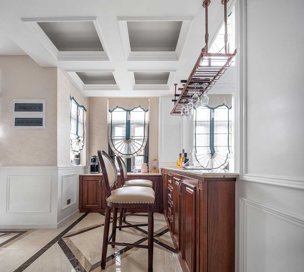 一张精心设计的吧台在家庭中可以起到画龙点睛的效果,还能突显业主的个性和与众不同。木质材质与周围环境很好的融合,整体设计简洁大方,又凝聚了现代时尚感。位于客餐厅之间,既独立,又有相互连接,增加了生活的情调也提高了生活品质。