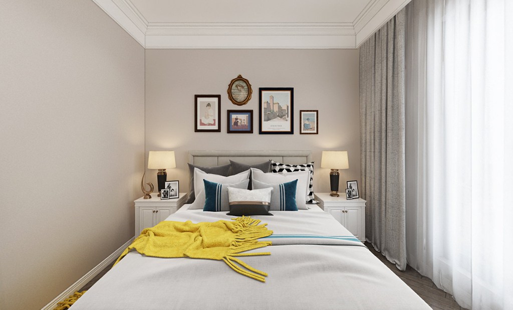 客卧设计师简化了繁杂的造型,简约的色调与装饰给整个空间一抹闲适感。墙头的装饰画自带美式氛围搭配格调至极的台灯,居住于此再美好不过。