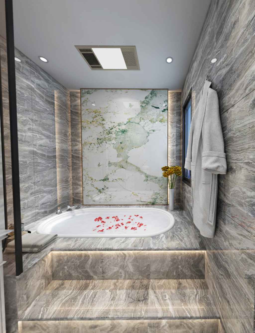 放弃传统卫浴的独立浴缸,采用嵌入式浴缸,独立的浴室空间让洗浴更加享受。捧一把花瓣,盛满温水,放松自我,感受身心的舒适。