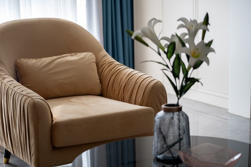 行进茶室一侧的休闲区,桌几、吊灯均散发着迷人的古韵,以诗意的演绎构筑起空间的精神格调。色彩运用上,设计师以浅米为硬装底色,同时融入白色、深灰、亮橙作为空间中灵动的美学注脚,赋予空间纯粹而高级的观感。