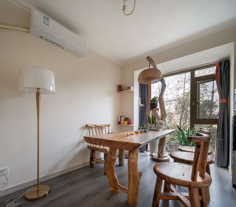 多功能室由榻榻米与办公区域组合的形式呈现,在增加储物空间的同时,屋主工作疲累时也可在此稍作休息。如有亲友临时探访小憩,这间房也可充当卧室暂用。深浅色调与材质的巧妙拼接赋予整体中式韵味,静谧典雅。